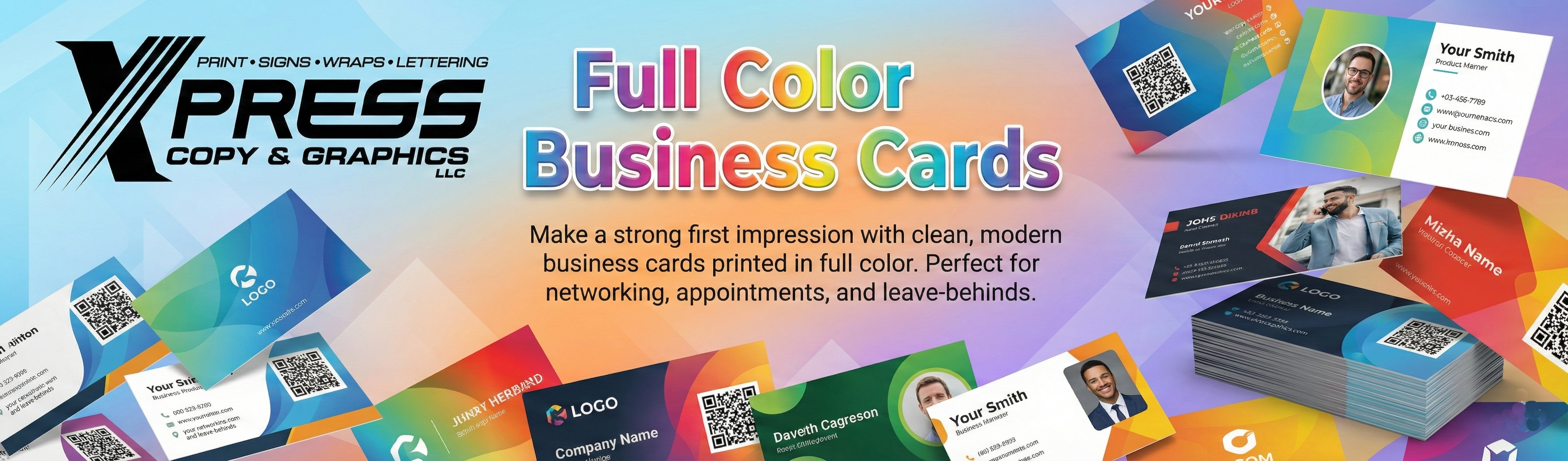 Prefer to talk it through first? Call us at (540) 829-1785 or email print@xpress-copy.com and we’ll help you choose the best options for your cards.